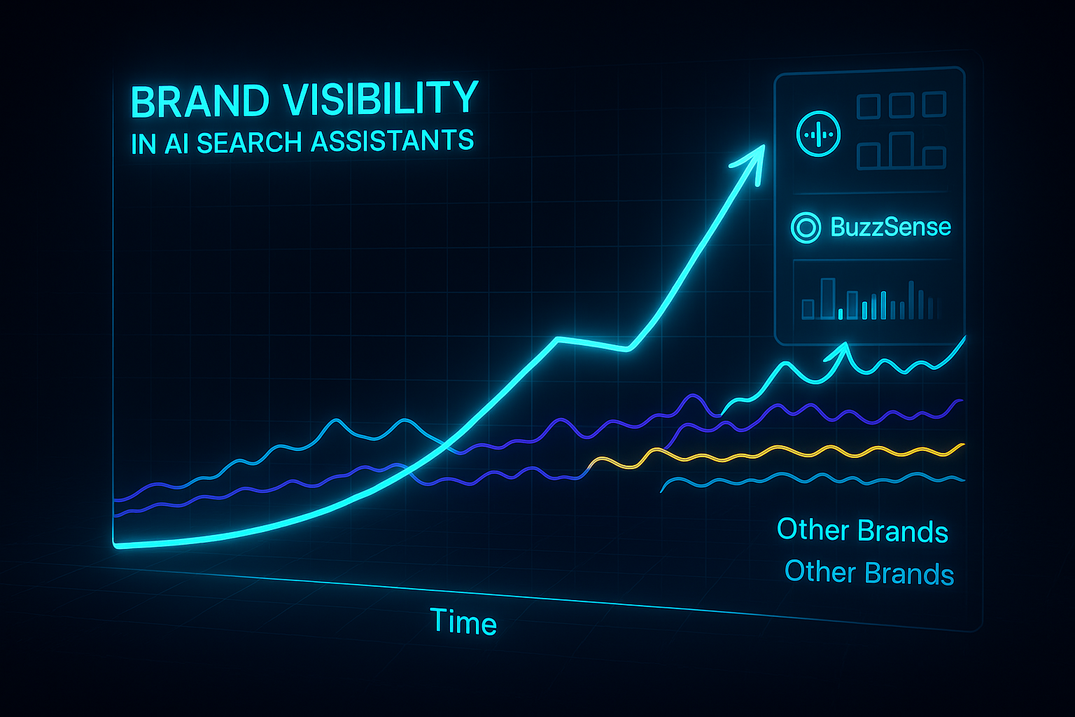 A platform named buzzsense.ai to track the brand visibility over time in ChatGPT, Gemini, etc. Parallel to the observed problem, it shows the following: